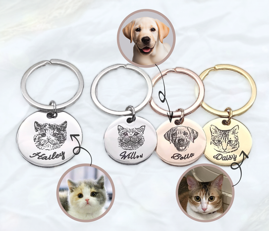Personalised Pet Portrait Keychain - Small/ Multi-pet