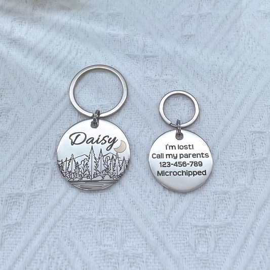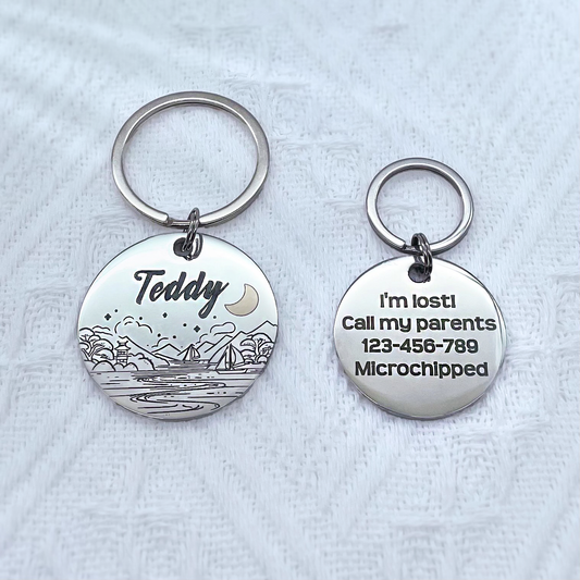Engraved Personalised Pet Name Tags for Dogs and Cats - The Lake (Colour-Changing Moon Series)