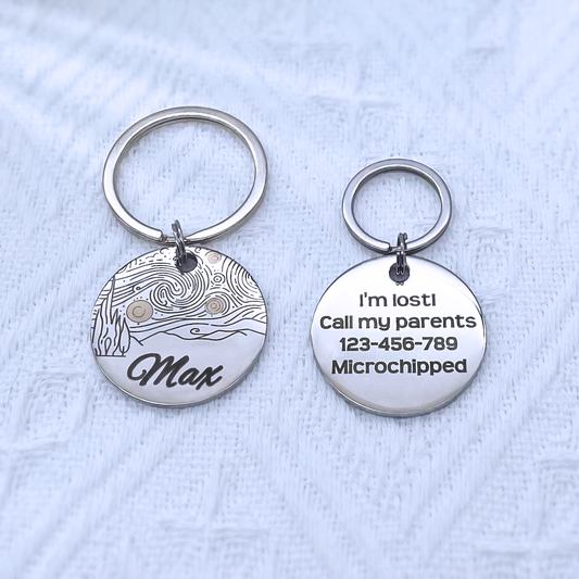 Engraved Personalised Pet Name Tags for Dogs and Cats - The Starry Night (Colour-Changing Stars Series)