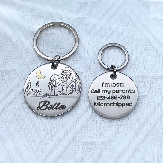 Engraved Personalised Pet Name Tags for Dogs and Cats - The Forest II (Colour-Changing Moon Series)