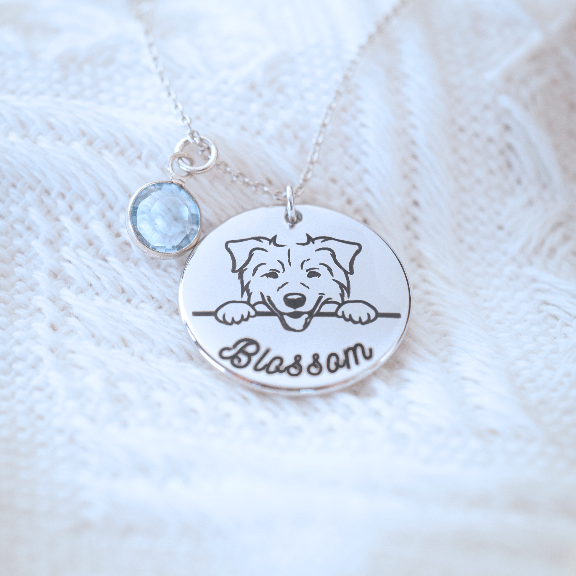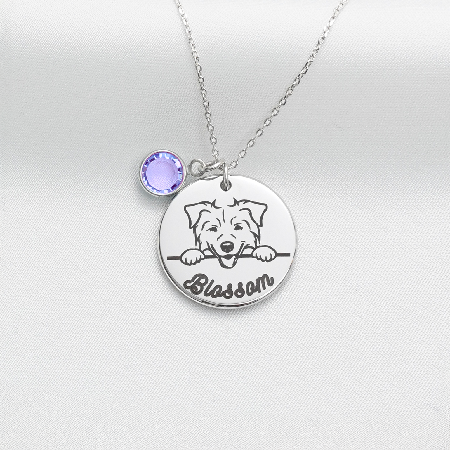 Keep your furry friend close to your heart with this lovingly crafted, personalised Peeking Dog Necklace. Whether it’s for your loyal companion or a beloved pet you’ve lost, this necklace features a cute peeking dog image designed specifically for your dog’s breed. Personalise it with your dog’s name on the front and a meaningful message on the back. Add a birthstone charm to make it even more special, a perfect way to honor your fur baby’s memory.